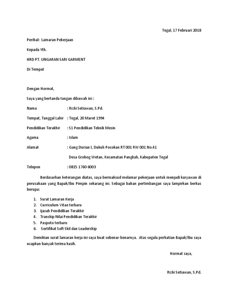 Pt ungaran sari garment (usg) merupakan anak usaha dari busana apparel group,. Melengkapi dan menyusun berkas lamaran kerja seperti surat lamaran kerja, . 37 contoh surat lamaran kerja terbaru yang baik dan benar lengkap. Permohonan lamaran pekerjaan kepada yth, hrd pt. Sari warna asli unit i.